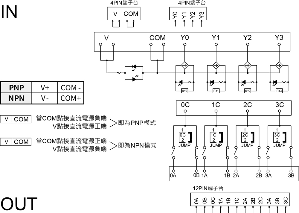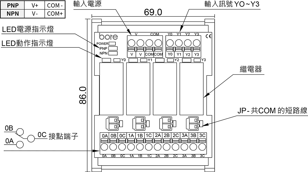 - 内建跨接元件接點保護裝置,使用短路條可簡化線圈端的跨接配線