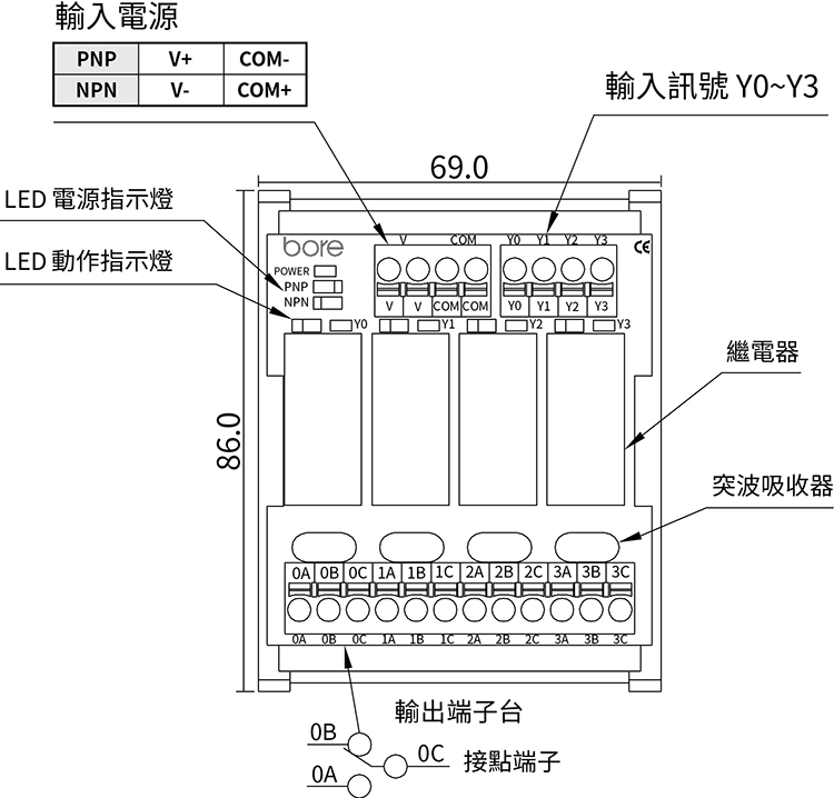 | 端子台型式 | 5.0mm 直插彈片式端子台 |
