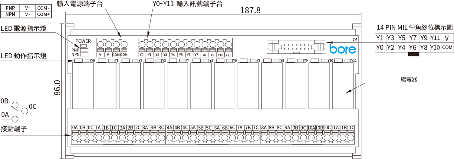 - 用於工業控制中輸入輸出觸點的 IO 擴展,可與 PLC 連接,擴展 PLC 的輸入及輸出端口