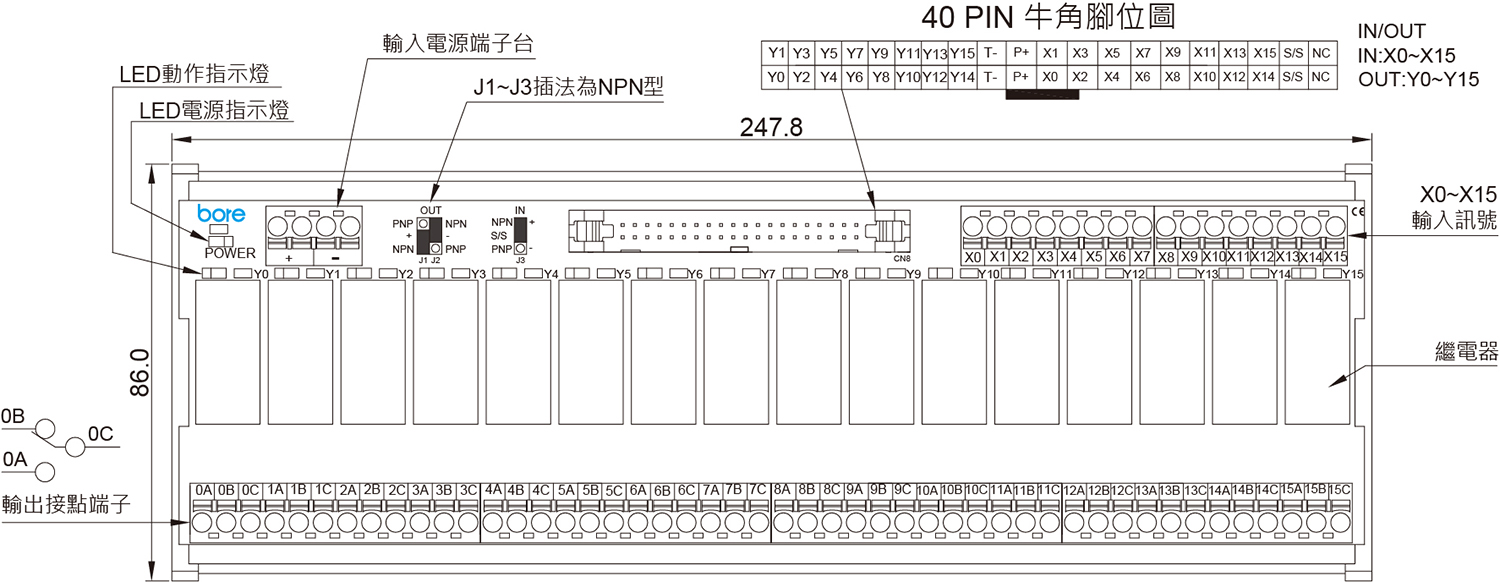- 用於工業控制中輸入輸出觸點的 IO 擴展,可與 PLC 連接,擴展 PLC 的輸入及輸出端口