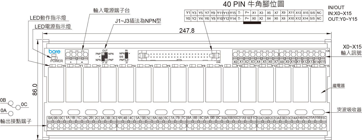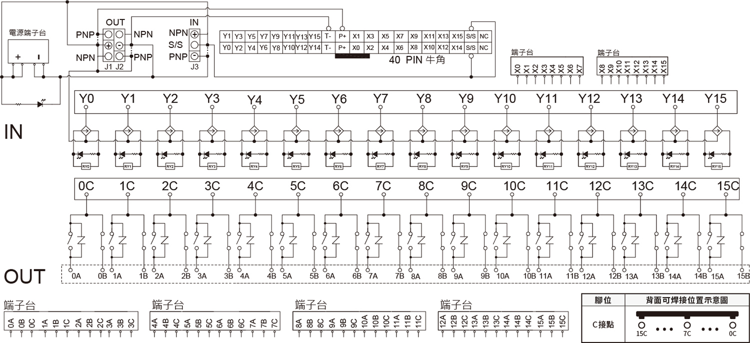 - 用於工業控制中輸入輸出觸點的 IO 擴展,可與 PLC 連接,擴展 PLC 的輸入及輸出端口