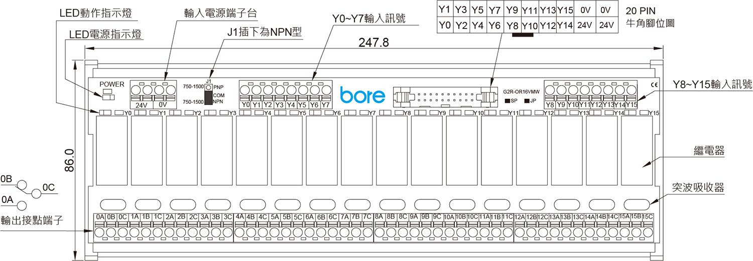 - 用於工業控制中輸入輸出觸點的 IO 擴展,可與 PLC 連接,擴展 PLC 的輸入及輸出端口