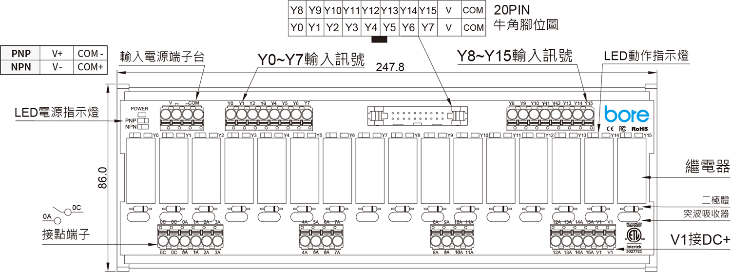連接器型式 20-PIN IDC / MIL 牛角連接器