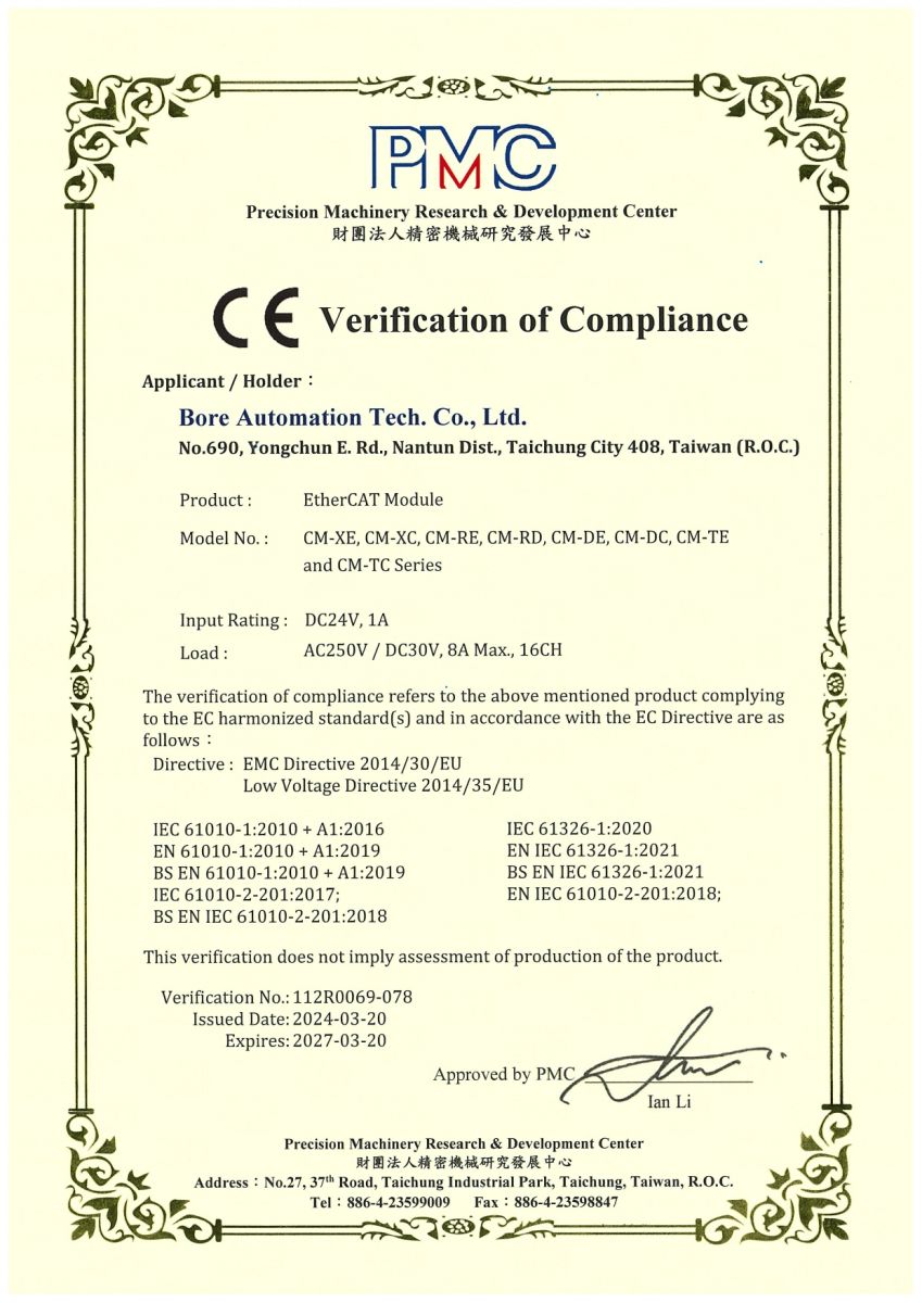 EtherCAT of products of Bore passed the UL/CSA certificate. Regardless of the product design or safety protection, it conforms to the standards. We ensure product quality so that you can rest assured.